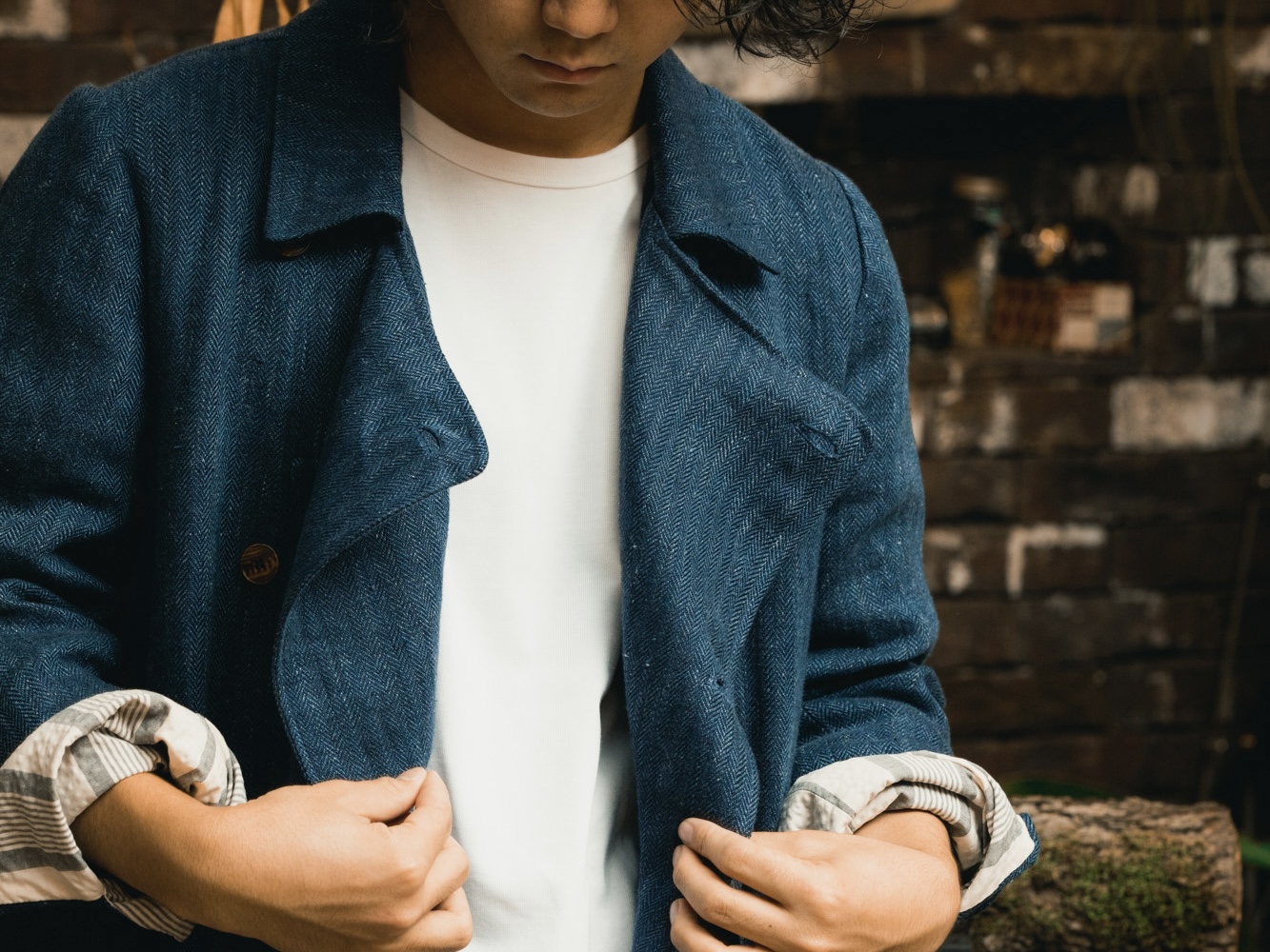 FRANK LEDER — DEAD STOCK COTTON TWEED JACKET WITH SIDE POCKET