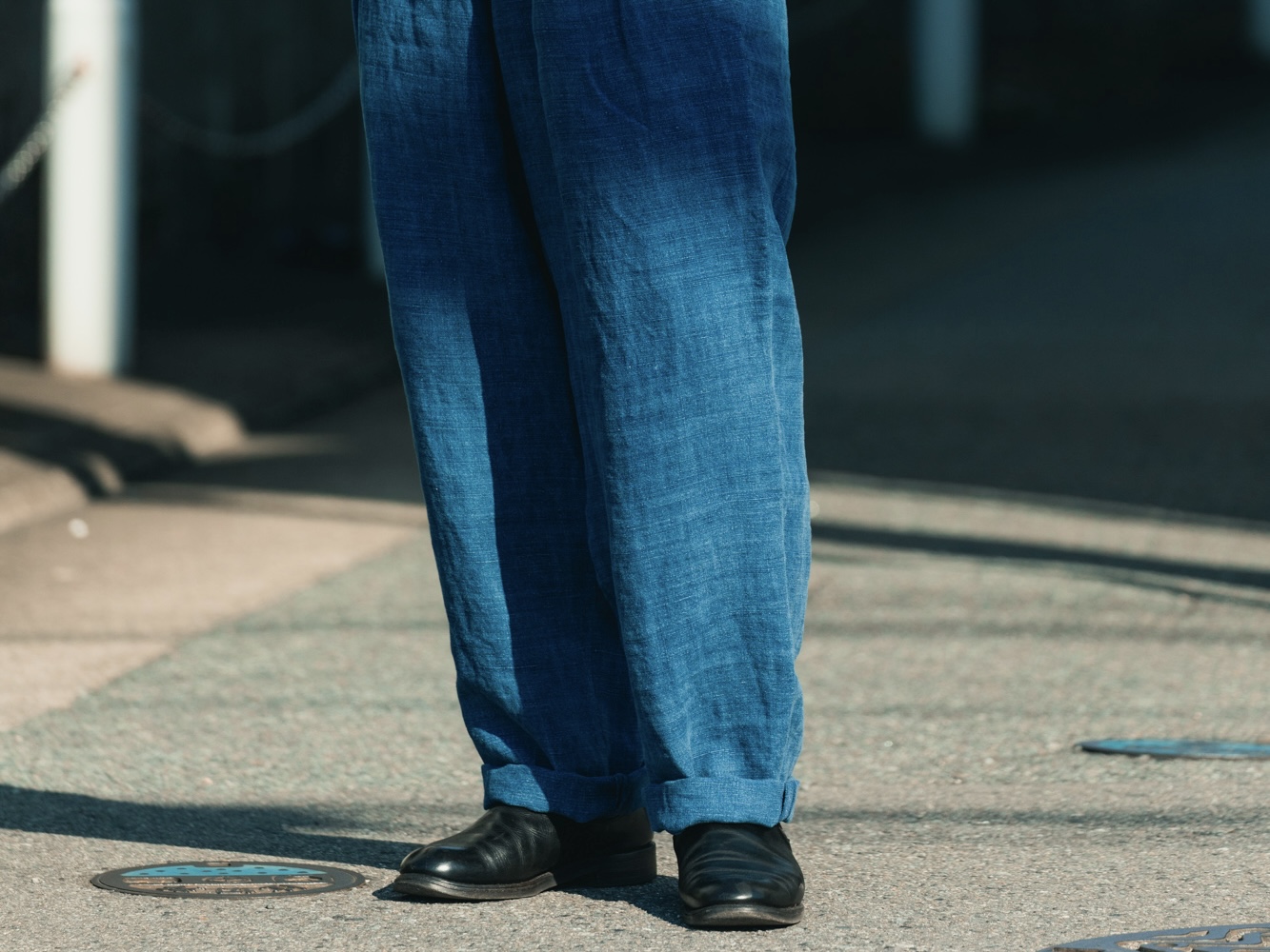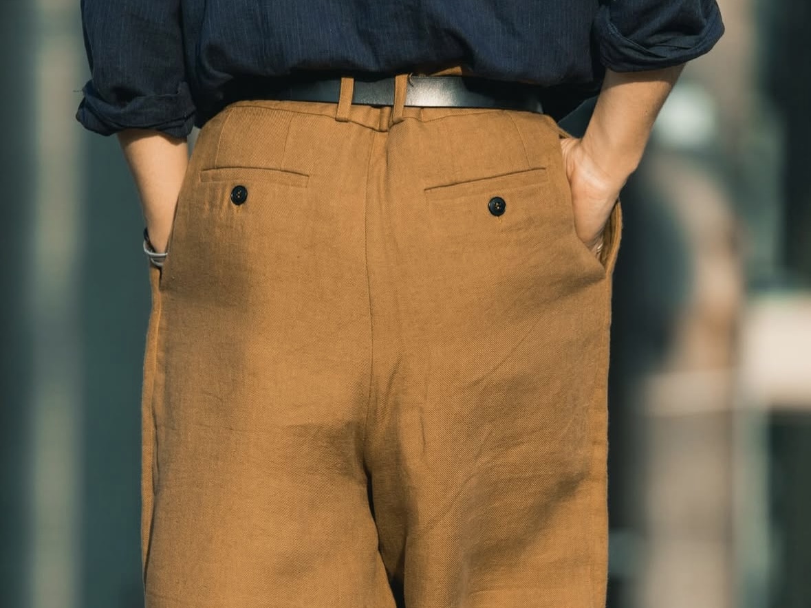 FRANK LEDER — INDIGO LINEN DRAWSTRING 2TUCK TROUSERS