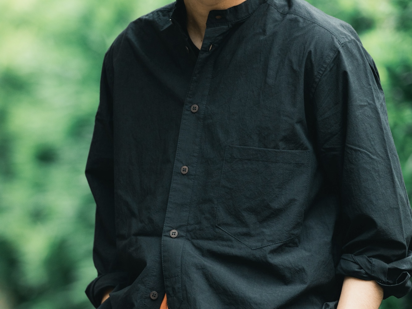 FRANK LEDER – Triple Washed Thin Cotton Old Style Stand Collar Shirt
