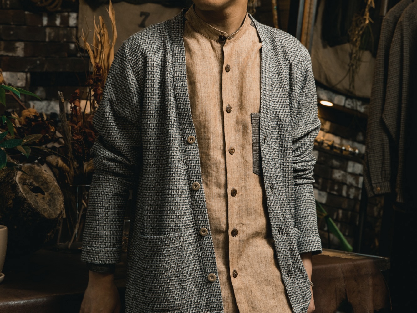 FRANK LEDER – Vintage Fabric Edition Stand Collar Shirt