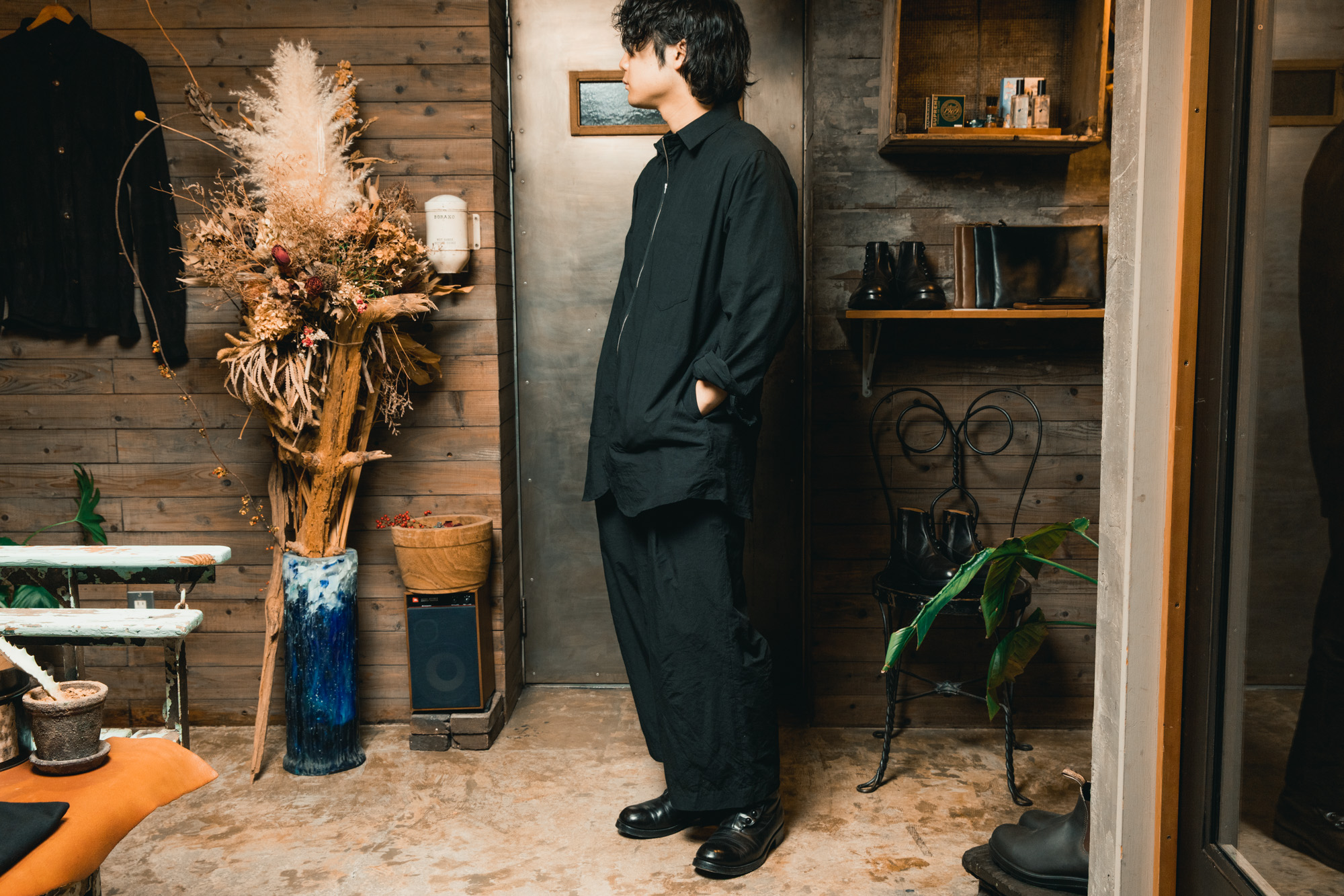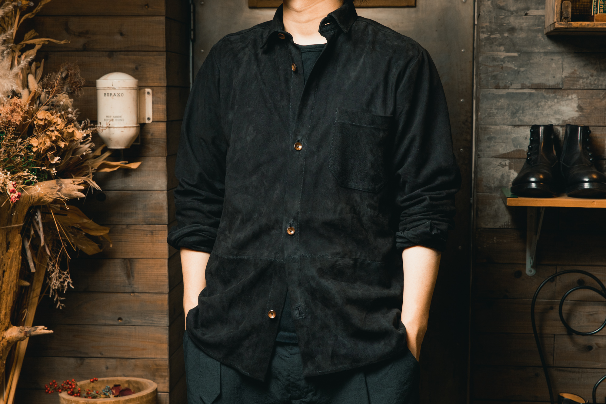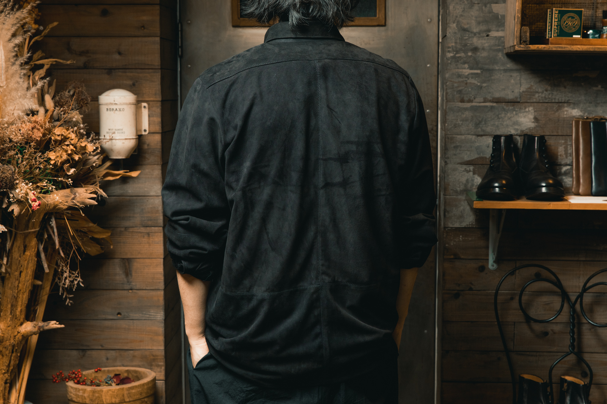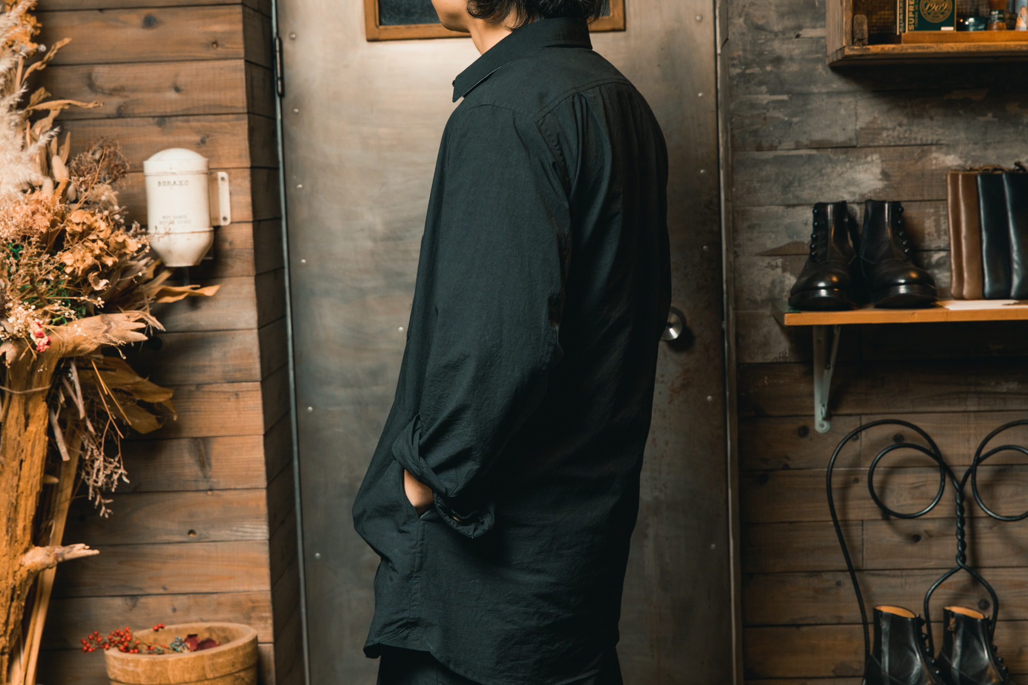 この革は、着始めた瞬間から完成されているわけではありません。日々袖を通し、擦れや皺が刻まれ、艶が増していくことで、その人だけの表情へと育っていきます。そういう意味では、これは単なるレザージャケットではなく、時間をかけて育てていく日常着なのだと思います。私にとっても、季節を問わずつい手に取ってしまう、まさに至高の日常着です。