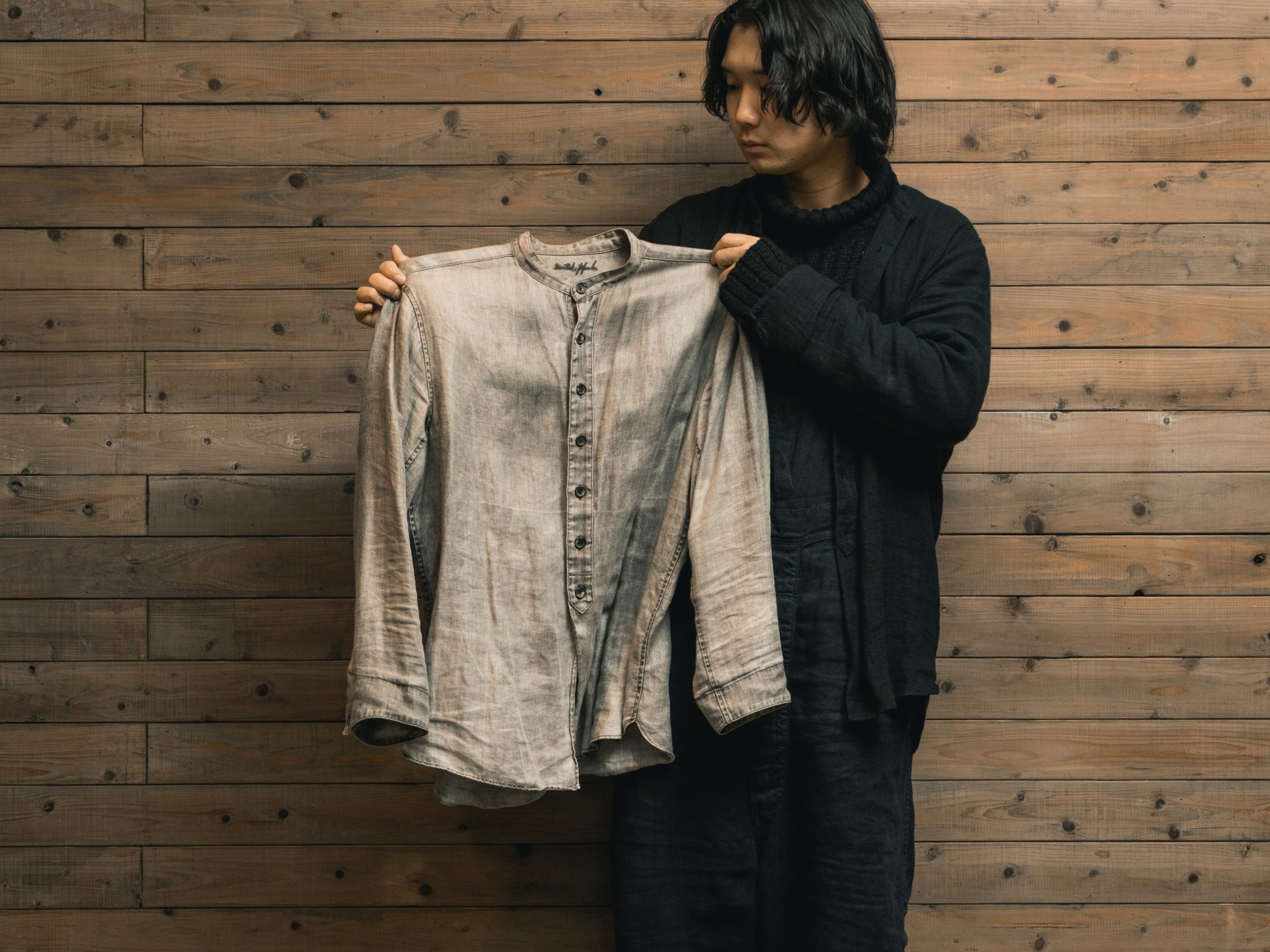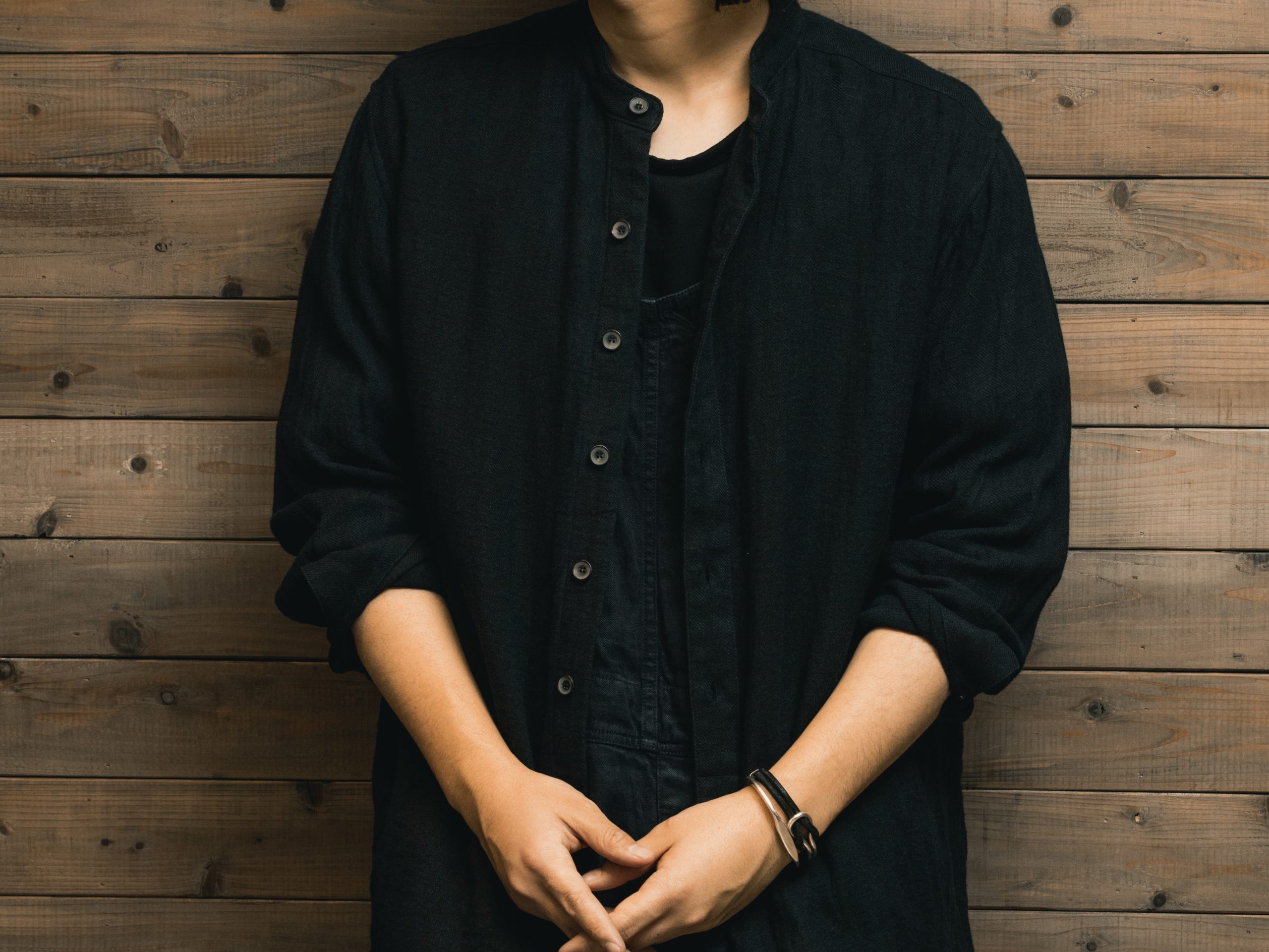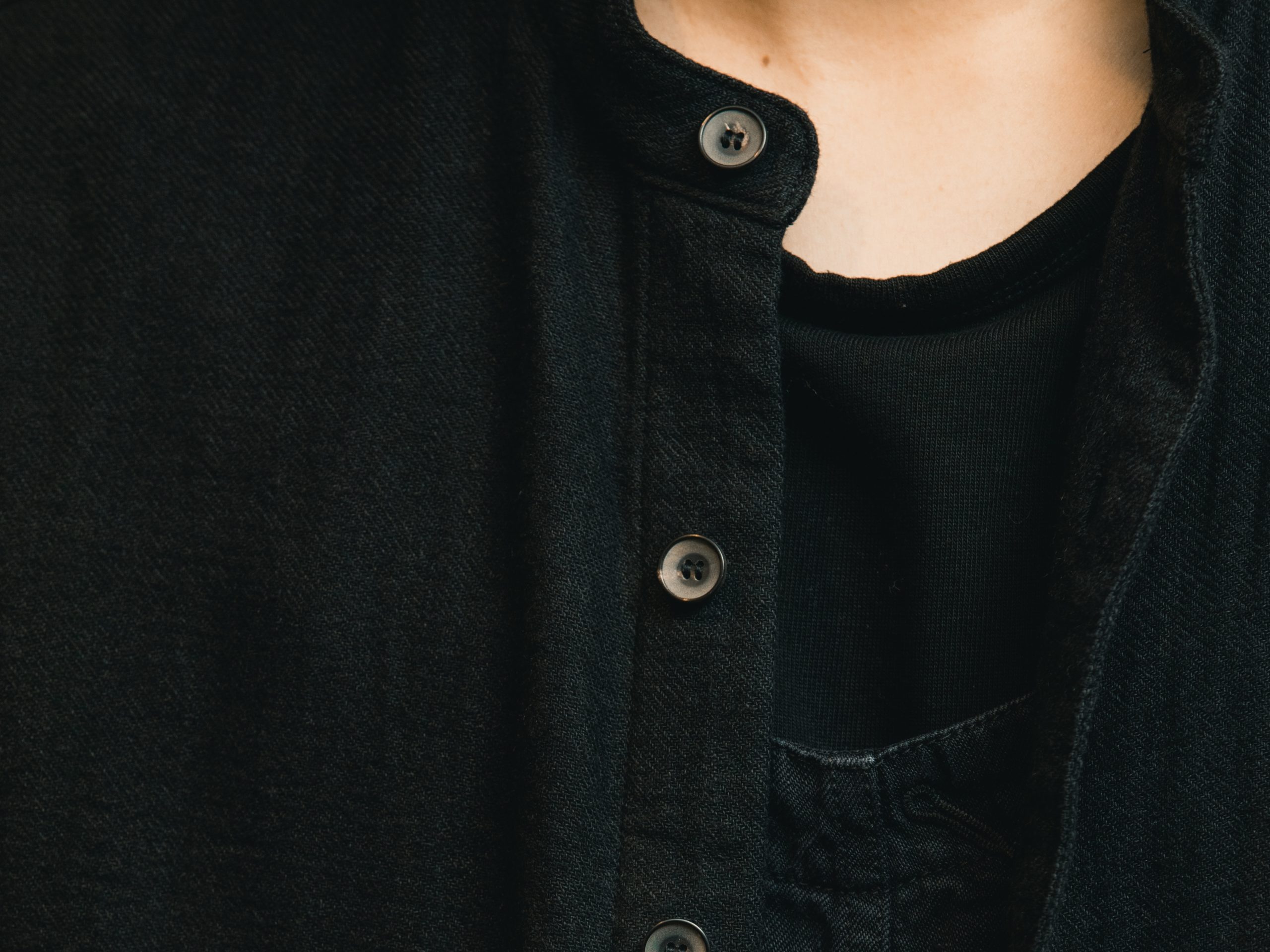 今作「Simon」は、そのStephanの思想や構造を受け継ぎながら、着用シーンの幅をさらに広げた一着、と解釈しています。袖の仕様はそのままに、サイズバランスを見直し、着丈を長く設定。ロングシャツとして制作されています。