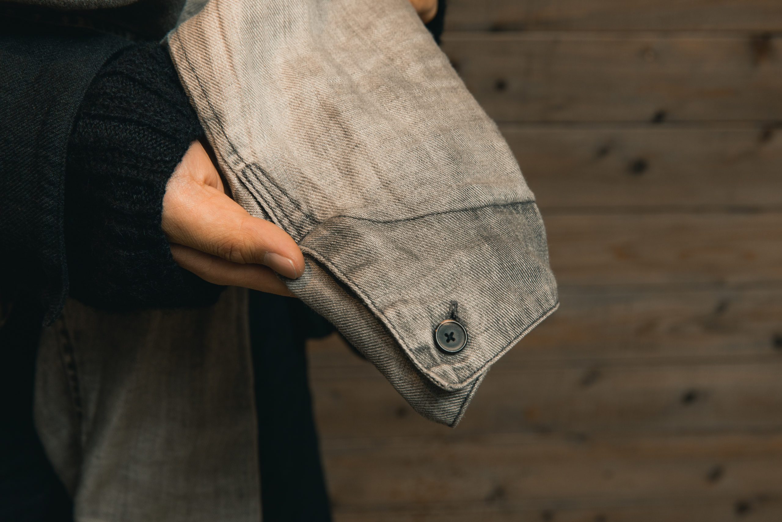 リリース当時、私はまだ大学生で、スタッフになる前でしたが、そのコンセプトどおり、本当に何も気にせずガンガン着続けていました。Stephanは、一般的なシャツとは異なり、ヴィンテージのカバーオールなどに見られる袖付けを採用しています。そのため、シャツとしても、軽い羽織としても成立する魅力がありました。
