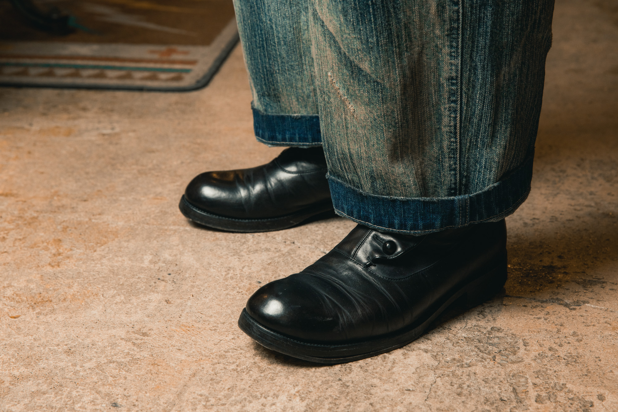 まずは、最大のポイントであるシルエット。Benjamin は、鳴門と大阪に拠点を持つ熟練の靴職人が、木型をおこし、一からハンドメイドで製作しています。肝心のトゥ部分は、シャープすぎず、かといってボリュームを出しすぎない絶妙なバランス。ヴィンテージのボタンブーツと見比べていただければ、その違いは一目瞭然だと思います。この計算された絶妙なシルエットこそが、「シーンを選ばない=普段使いできる」という Benjamin の大きな魅力を支えています。