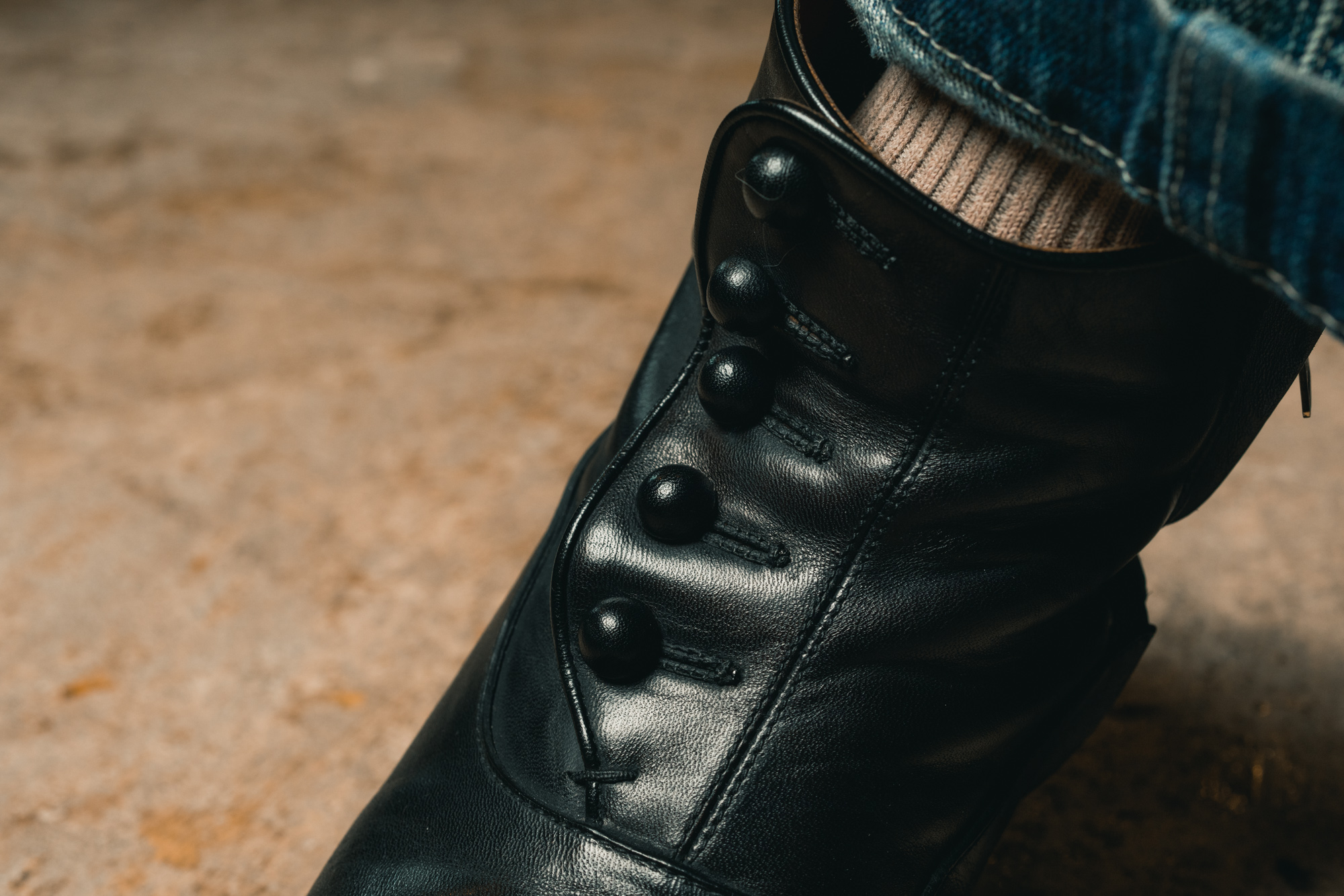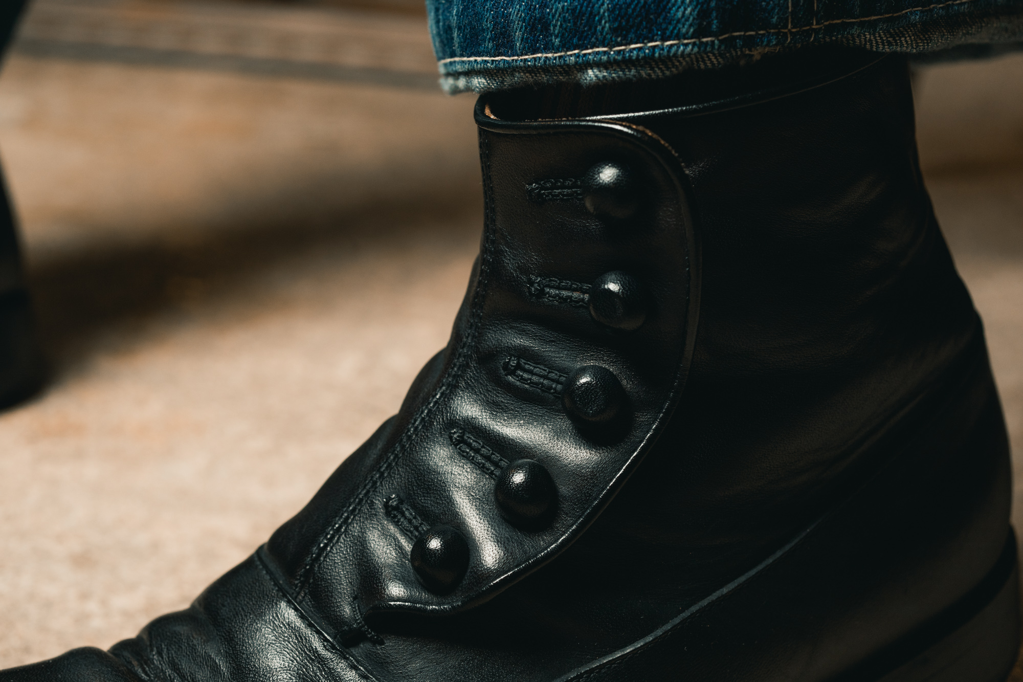 しかし、現代ではその存在は決してメジャーとは言えません。理由のひとつはトゥ部分がシャープなものが多く、フォーマルな印象が強く前面に出て日常使いしにくい点。そして、もうひとつの大きな理由が着脱の煩わしさです。前述の通り、ボタンブーツは本来、専用の器具を使わなければ着脱できず、脱ぎ履きに非常に手間がかかるという決定的な課題を抱えています。