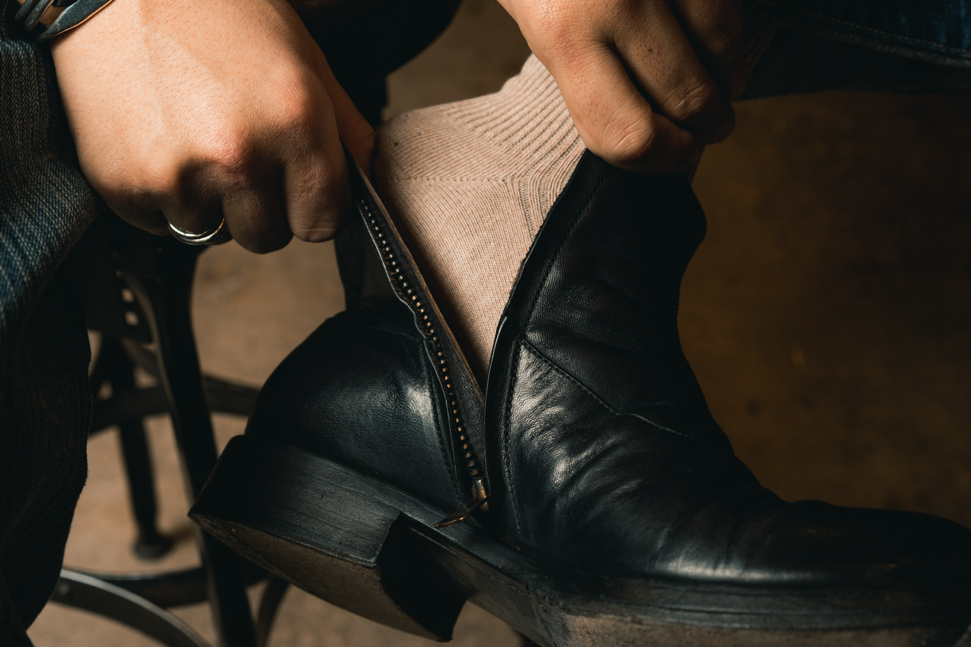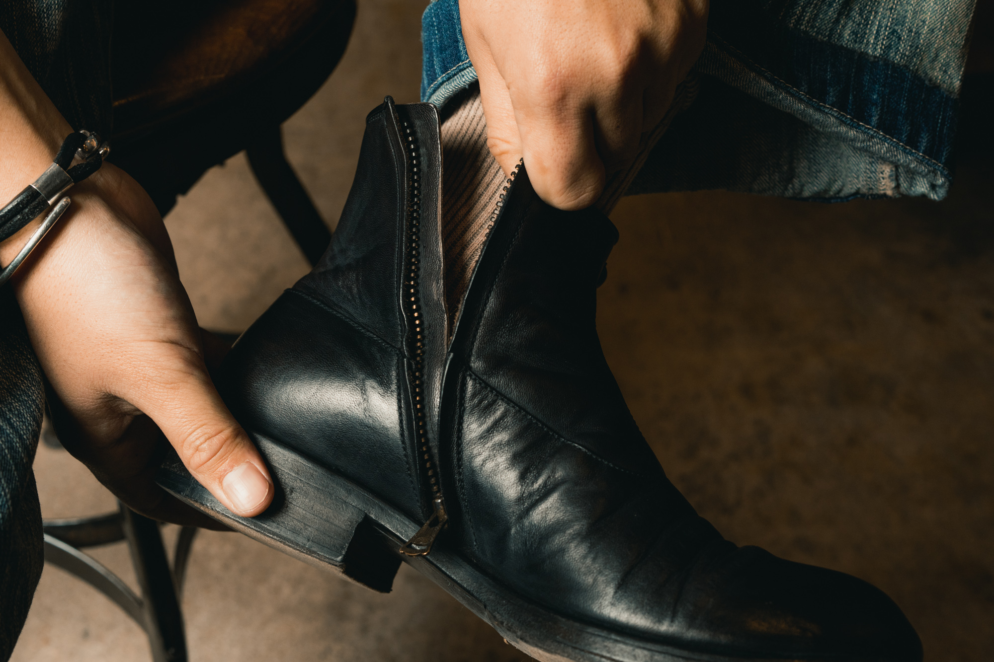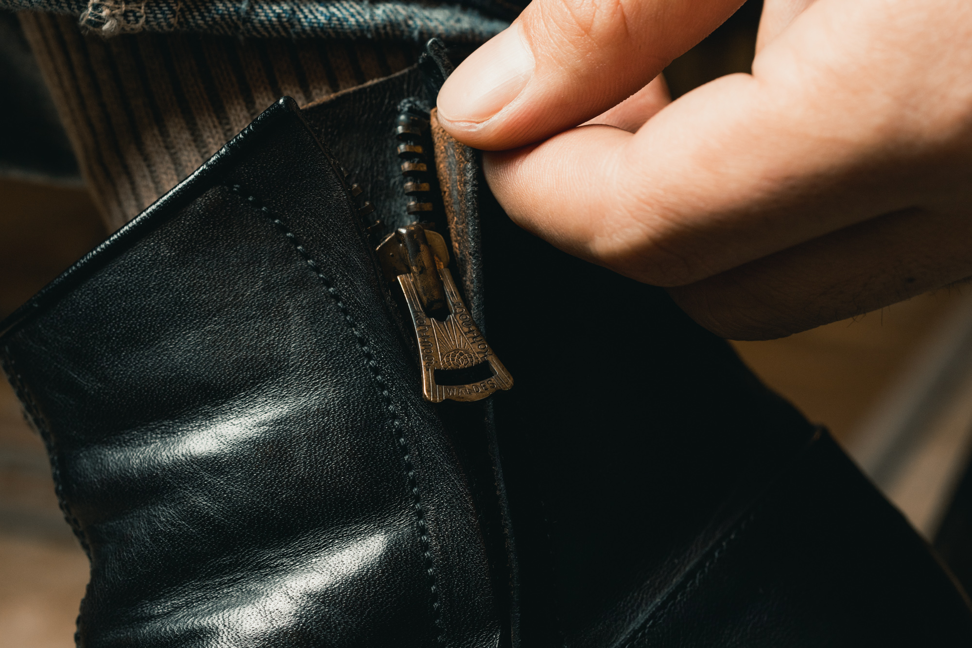 もうひとつの課題であった着脱のしづらさについても、サイドジップを採用することで驚くほどスムーズになりました。最初こそジップがやや硬く感じる方もいらっしゃるかもしれませんが、慣れれば10秒とかからず脱ぎ履きできます。さらに嬉しいのが、ジップが完全に隠れる設計になっている点。見た目の表情を損なうことなく、利便性だけを向上させているのは、嬉しいポイントです。