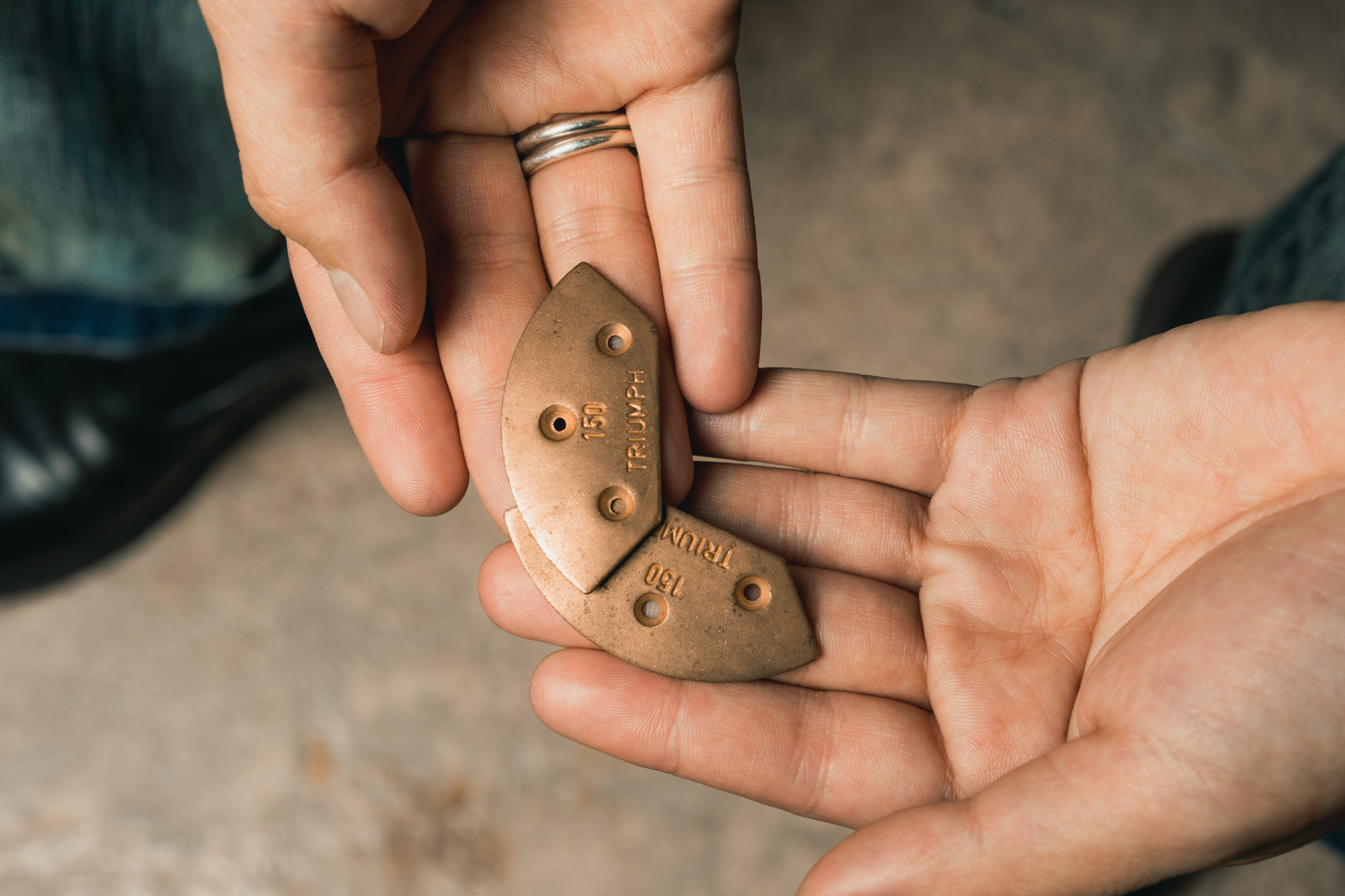 別途1,000円(税込)で、トゥスチールをお付けすることも可能です。使用するのは、ヴィンテージのトライアンフ製。真鍮製のものは数が少なく、年々希少性が高まっています。靴職人がストックしているものをご用意しておりますので、ご希望の方はお声がけください。